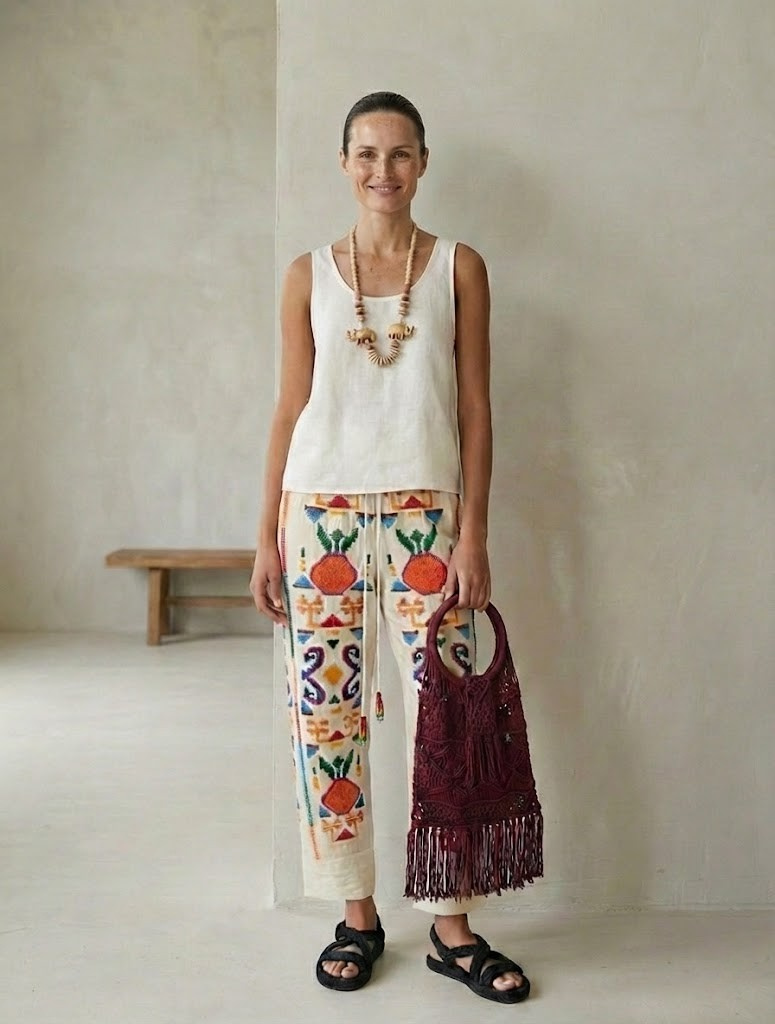 Sun & Eye Print Linen Pants