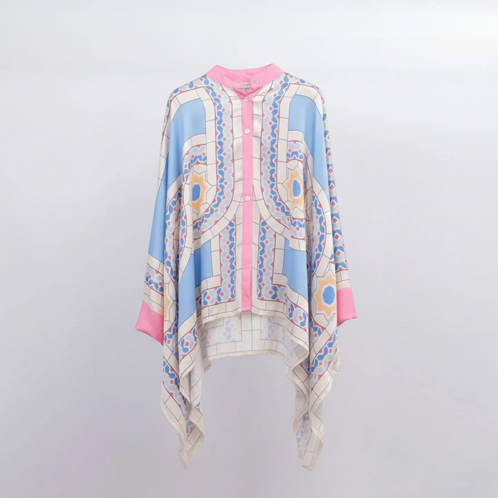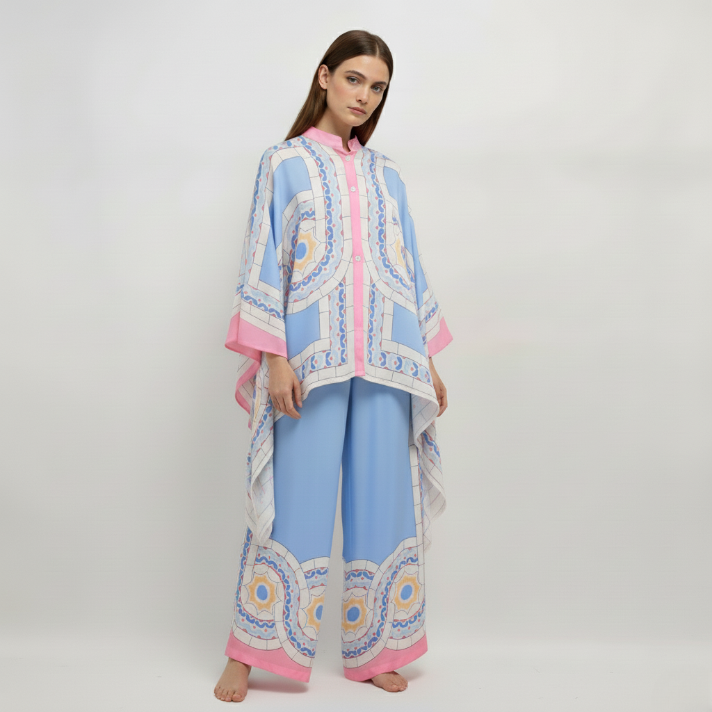 Pastel Mosaic Kaftan Set with Palazzo Pants