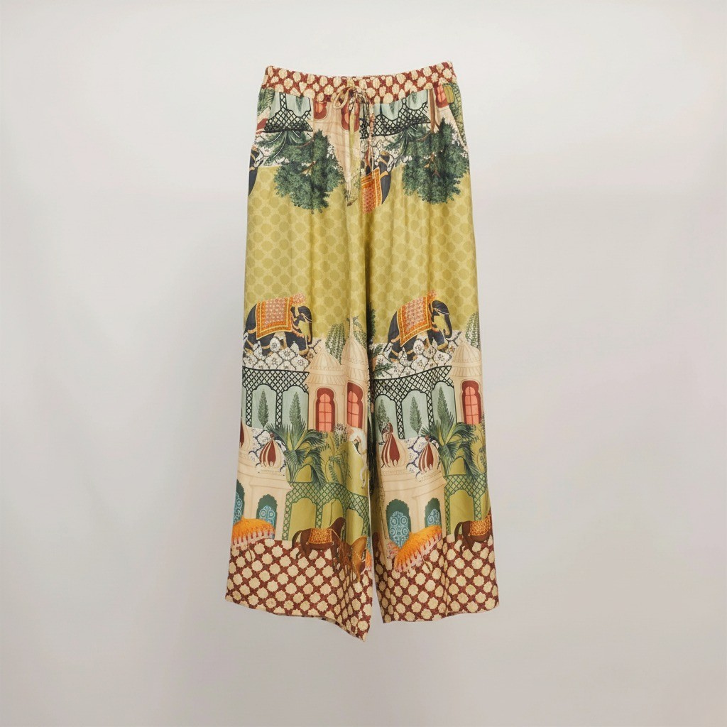 Majestic Caravan Printed Palazzo Pants Palace and Elephants